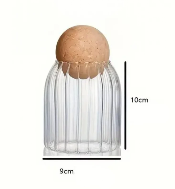 Un borcan compact și elegant, realizat din sticlă transparentă, prevăzut cu capac bilă din plută naturală. Este ideal pentru păstrarea condimentelor, ceaiului, zahărului, bomboanelor sau a altor produse alimentare de mici dimensiuni.